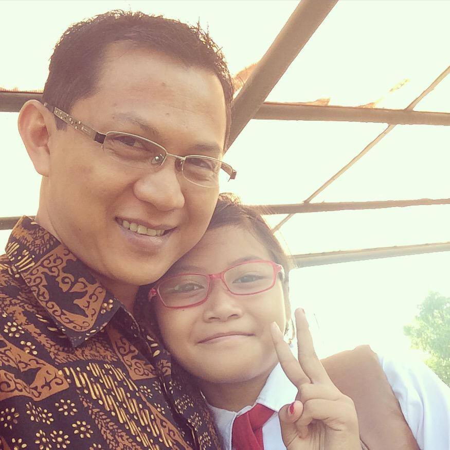 “Ayaahhh!” saya mendengar teriakan dan terlihat seorang anak perempuan berseragam putih merah berlari ke arah saya. Gadis kecil itu menabrak saya dan memeluk tubuh saya dengan erat seerat-eratnya. Dunia berubah cerah, energi semesta tumpah pada saya dan rasa haru menghantam tanpa ampun. Saya memeluk tubuh kecilnya beberapa lama. Memang lebai. Mungkin beberapa orang tua di sekitar situ memperhatikan dengan penuh pertanyaan. Tapi sudahlah. Tidak penting apa anggapan mereka.